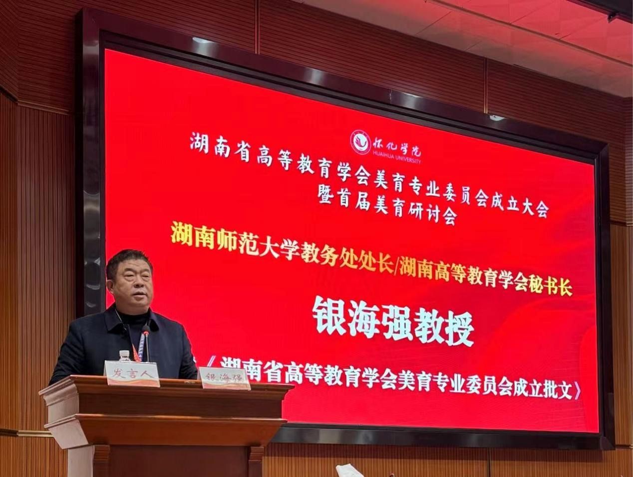 (通讯员:湖南师范大学美育研究与发展中心)2025年1月4日,湖南省高等教育学会美育专业委员会成立大会在怀化召开。怀化学院校长董正宇、湖南省高等教育学会秘书长银海强,以及来自43所湖南省内高校和教育部师范教育协同提质计划湖南师范大学组团中的5所省外高校的共计300余名师生代表出席会议。怀化学院副校长伍贤进主持会议。